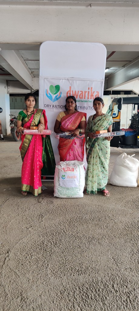 On October 16, 2022, the Dwarika Memorial Charitable Trust celebrated Diwali by honouring women who are employed as domestic workers in Pune. The members of the Trust distributed 19 dry ration kits, boxes of candies and some home furnishing items to each worker. A two-month supply of flour, lentils, rice, spices, sugar, oil, and other cooking essentials was included in each ration kit.